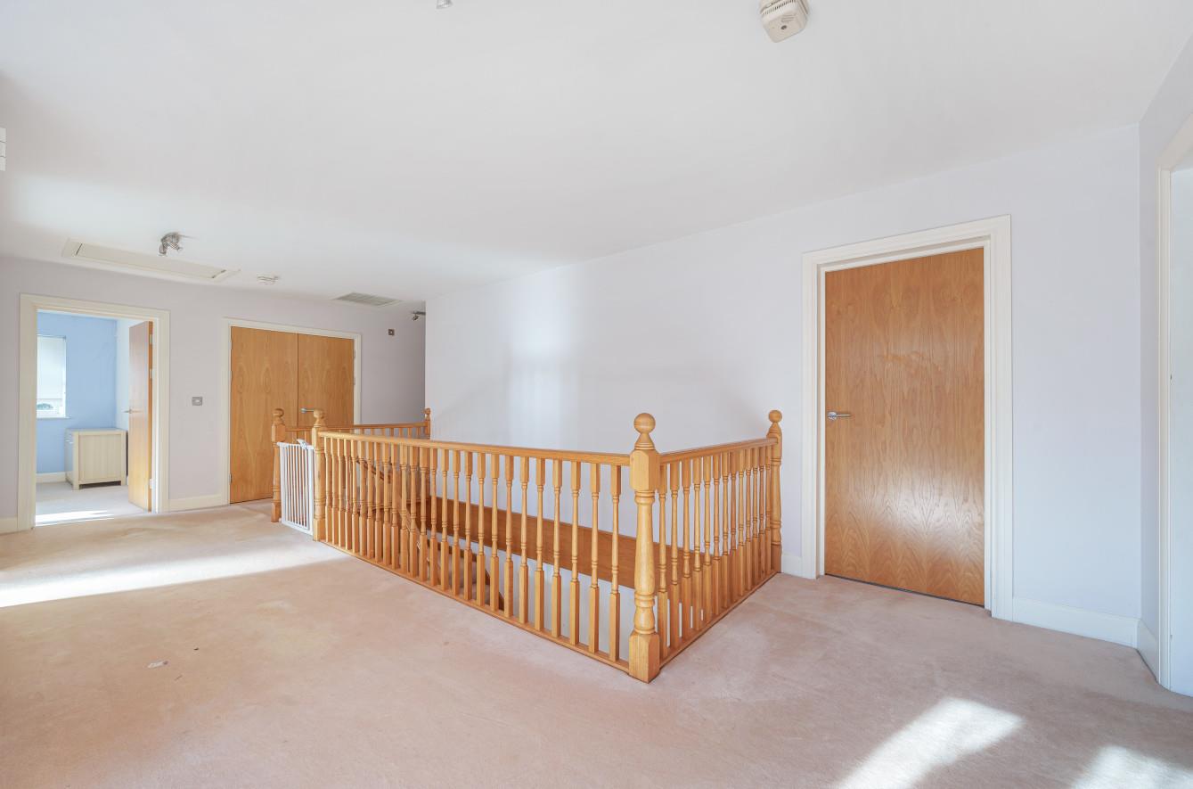 One of three houses built in 2003, the property offers ample space for a larger or extended family. The current layout offers a spacious entrance hall leading on to 3 reception rooms, home office, downstairs W/C, kitchen and utility room on the ground floor. As you make your way upstairs, you are greeted with a bright and generously sized galleried landing with snug/sitting area. Leading to 5 bedrooms with 2 shower en suites and the family bathroom. Outside the property has a flat turfed garden with patio area and mature shrubs, parking for many cars and a double garage.